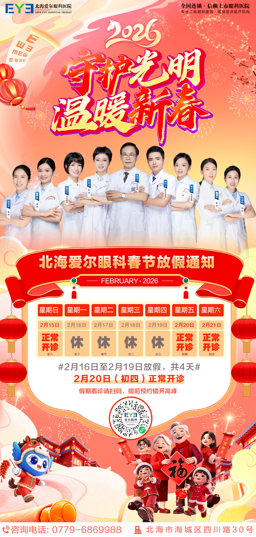 北海愛爾春節(jié)門診安排:除夕至初三休診,大年初四正常開診